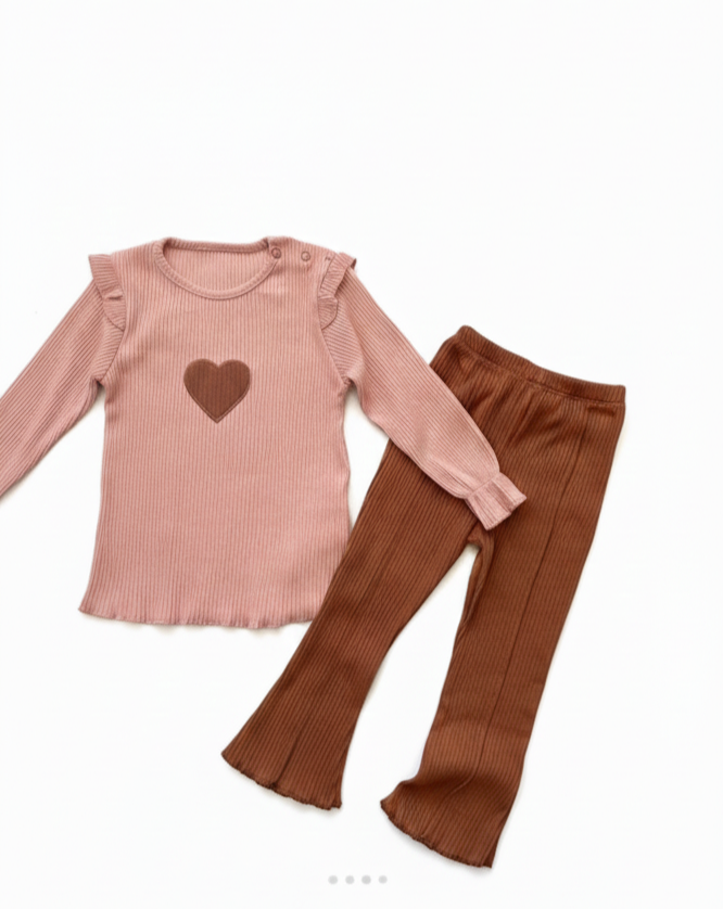 طراحی و استایل: ترکیب رنگ صورتی کالباسی و قهوهای، ظاهری مدرن و گرم به این ست بخشیده است. جزئیات چیندار روی سرشانه و مچ دست، آن را از یک لباس راحتی ساده به یک استایل شیک و فانتزی تبدیل کرده است.