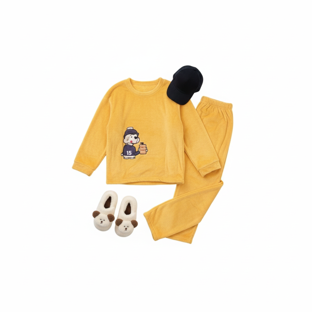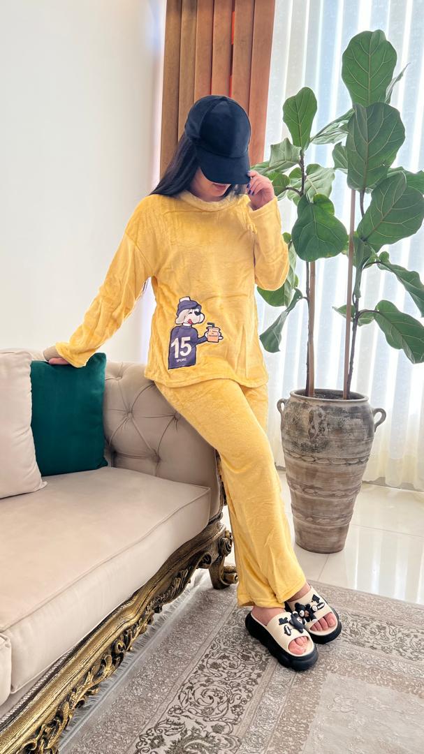 ست دو‌تکه بلوز و شلوار راحتی مدل آزاد از جنس پولار گرم با طراحی مینیمال و چاپی