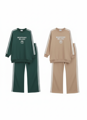 ست سوییشرت لانگ و شلوار بگ کشباف با نوار دوزی (طرح MOSCHINO)