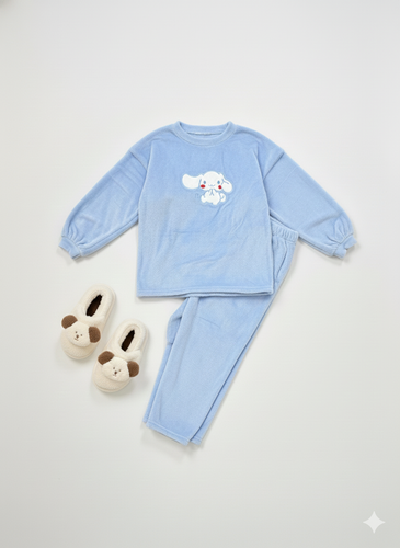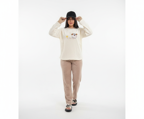 ست لباس راحتی مخملی گرم،طرح عروسکی فانتزی (Oki) با بلوز و شلوار لطیف.