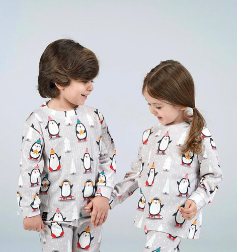 ست بلوز و شلوار دورس پنبهای بچگانه طرح پنگوئن با تنخور راحت و کیفیت چاپ بالا