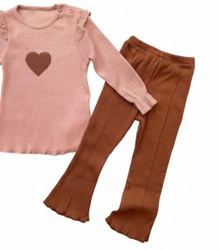 ست بلوز و شلوار دخترانه طرح قلب؛ جنس پنبه کبریتی برند [نام برند ترک]